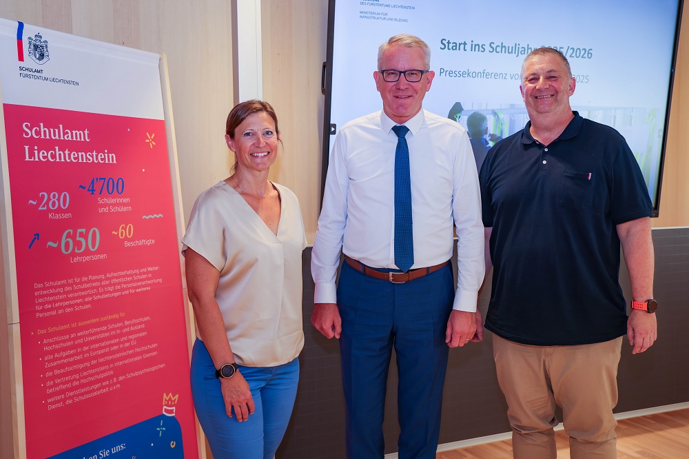 Vaduz (ots) – Am Mittwoch, 13. August 2025, informierten Bildungsminister Daniel Oehry, Schulamtsleiterin Rachel Guerra sowie Peter Hilti, Schulleiter der Weiterführenden Schulen in Vaduz, im neuen „Haus Weiss“ über aktuelle Projekte und Themenschwerpunkte des neuen Schuljahres 2025/26.