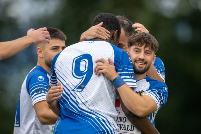 In der 4. Runde der laufenden Saison gewinnt der FC USV das erste Spiel verdient mit 2:0 gegen den FC Kosova. Die Eschner waren die bessere Mannschaft mit guten Chancen. Kosova war- vor allem in der 1. Hälfte- unter dem grossen Druck der USV’ler mit viel Defensivarbeit beschäftigt. Die Treffer erzielten Ismail Adejumo (2.) und Medin Martin (38.) mittels Penalty. Foto: Jürgen Posch
