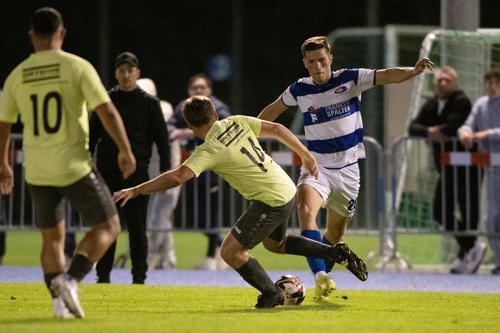 3.9.2025, Sportzentrum Rheinwiese. Der FC Schaan schlägt Tabellenführer Rüthi 6:0. Im Bild (rechts) der dreifache Torschütze Endre Kepenyes. Foto: Jürgen Posch.