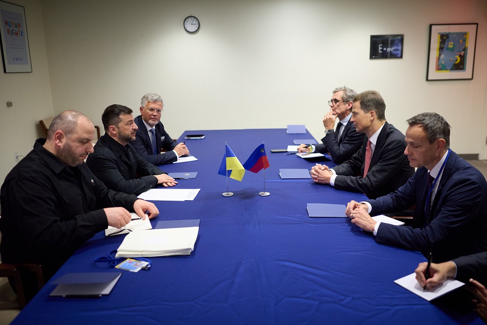 S.D. Erbprinz Alois von und zu Liechtenstein trifft im Rahmen der Hochrangigen Woche der UNO-Generalversammlung in New York den ukrainischen Präsident Wolodymyr Selenskyj. (Quelle: Press Service Of The President Of Ukraine.YPV.2025) Foto: IKR