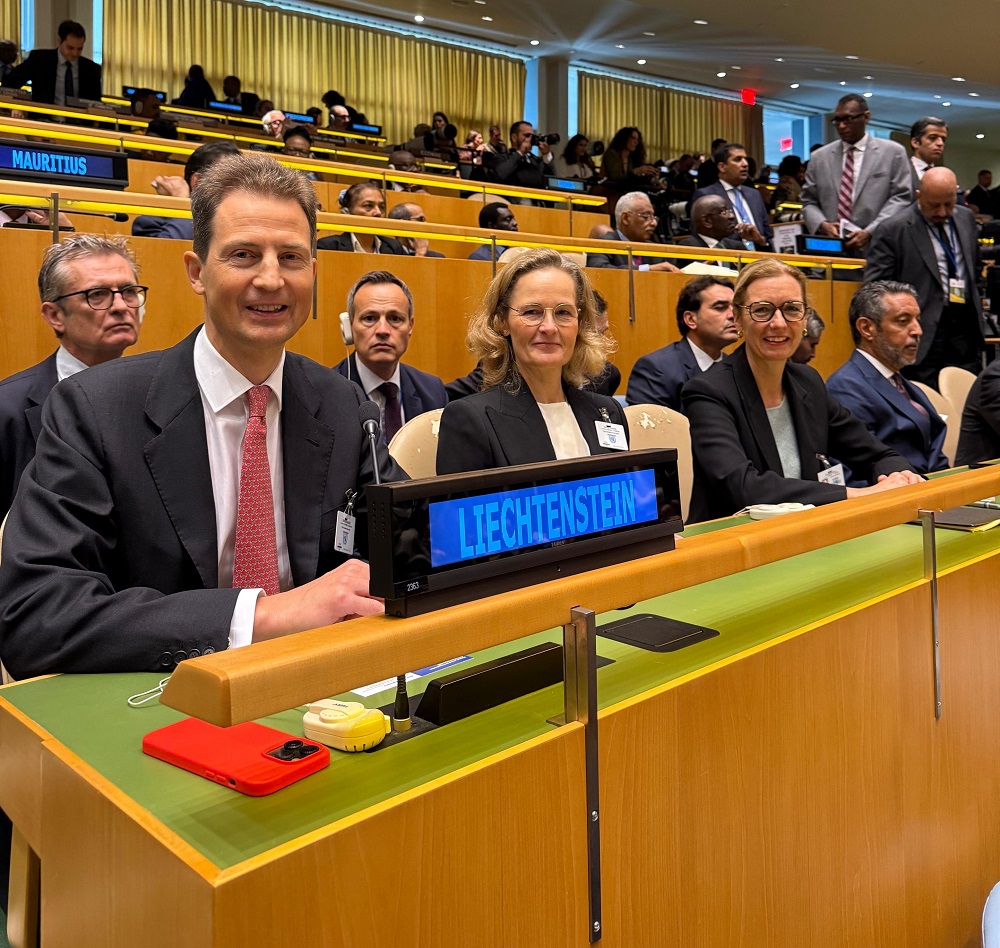 Die Eröffnung der Generaldebatte sowie zahlreiche Nebenveranstaltungen der diesjährigen Hochrangigen Woche standen erneut im Schatten des anhaltenden Konflikts und der humanitären Katastrophe in Gaza. Gleich zu Beginn der Woche fand auf Initiative Frankreichs und Saudi-Arabiens eine Konferenz zur Zweistaatenlösung statt. Liechtenstein unterstützte die bereits im Vorfeld verabschiedete Abschlusserklärung, die sich für eine friedliche Lösung des Konflikts sowie die Umsetzung der Zweistaatenlösung einsetzt. Darüber hinaus verurteilte Regierungschefin-Stellvertreterin Monauni im Rahmen einer Nebenveranstaltung die Angriffe auf Zivilpersonen, vor allem auf Kinder in Gaza und im Westjordanland, und unterstrich Liechtensteins Engagement für den Schutz von Kinderrechten: „Palästinensische Kinder haben Anspruch auf dieselben Rechte und denselben Rechtsschutz wie alle anderen Kinder auch. Vor allem gebührt ihnen eines: eine Kindheit.“