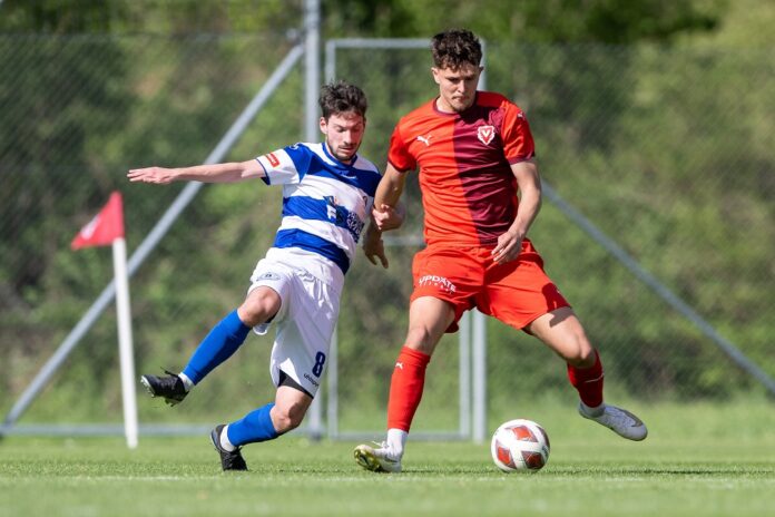 Archivbild FC Vaduz gegen den FC Schaan 2024/25. Foto: Quaderer (Schaan) gegen Linsmaier.