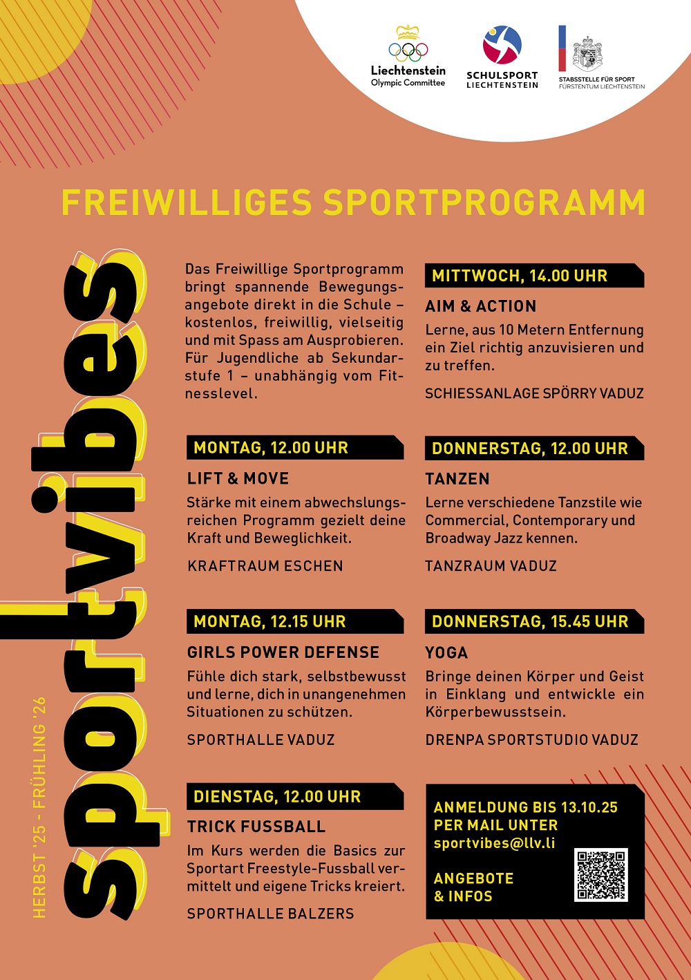 Eine Anmeldung ist ab sofort möglich unter: sportvibes@llv.li