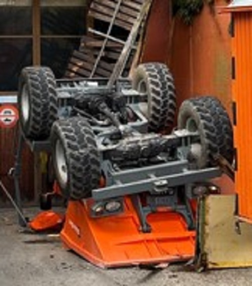 Ein Mann fuhr kurz nach 18:00 Uhr mit einem Baustellenfahrzeug (Dumper) retour auf einen Parkplatz ein. Dabei verlor er die Herrschaft über das Fahrzeug, durchbrach einen Zaun und stürzte über eine knapp sieben Meter hohe Brüstung in die Tiefe. Der Mann wurde beim Aufprall auf dem Vorplatz vom herabgestürzten Fahrzeug eingeklemmt und erlag noch am Unfallort seinen Verletzungen.
