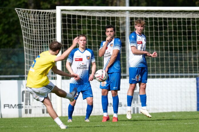 Hier erzielt der Freienbacher Dario Marcon in der 42. Minute das 0:2 per Freistoss. Foto: Michael Zanghellini