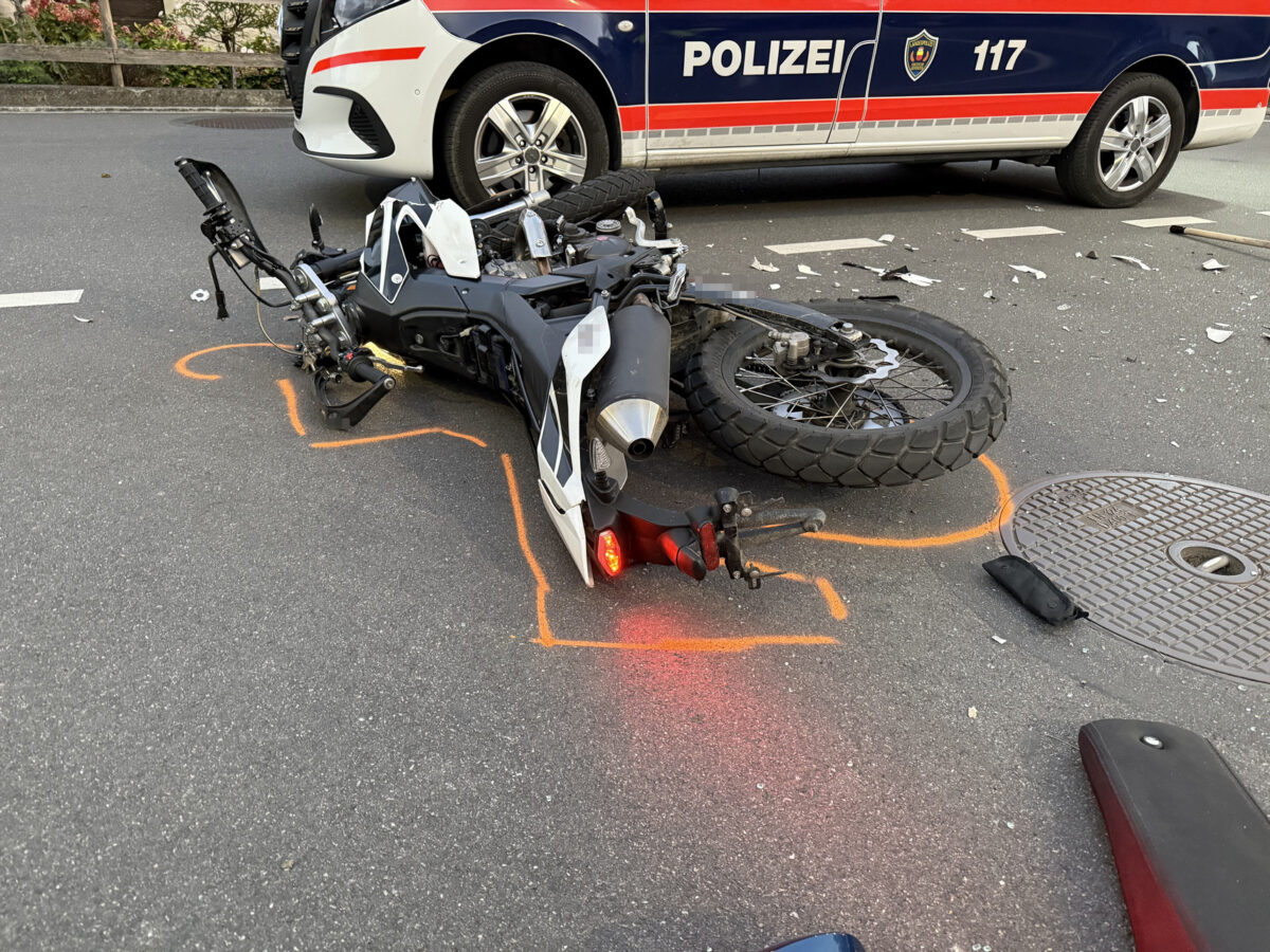 Gegen 06:30 Uhr wollte der Fahrer eines Personenwagens die Kreuzung Gapetschstrasse/Wiesengasse in Richtung Schaaner Zentrum überqueren, als es zur Kollision mit dem Motorradfahrer kam. Letzterer zog sich bei der Kollision diverse Verletzungen, unter anderem diverse Brüche und Schürfwunden am ganzen Körper, zu. Er wurde mit dem Rettungsdienst ins Spital gebracht. An beiden Fahrzeugen entstand erheblicher Sachschaden.