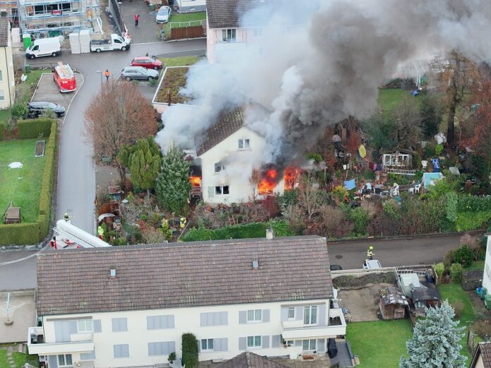 Uzwil – Am Mittwoch (26.11.2025) ist an der Säntisstrasse ein Einfamilienhaus in Brand geraten. Die Feuerwehr konnte die Flammen rasch unter Kontrolle bringen und löschen. Personen wurden keine verletzt. Am Gebäude entstand Sachschaden im Wert von mehreren hunderttausend Franken.