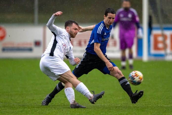 Rafael Grünenfelder (r.) im Zweikampf mit einem Spieler des FC Walenstadt. Bild: Jürgen Posch
