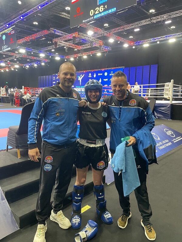 Einen deutlichen Erfolg feierte auch Ladina Mathiuet bei den Damen im Kick Light bis 60 Kilogramm. Gegen Saudi-Arabien liess sie keine Zweifel aufkommen, dominierte das Geschehen über die gesamte Kampfzeit und setzte sich klar durch. Damit zieht auch sie eine Runde weiter und trifft im Viertelfinale auf Italien.