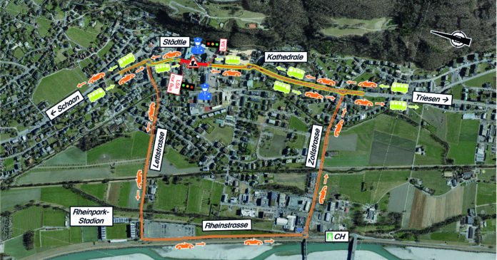 geführt. - Der Verkehr in Fahrtrichtung Triesen wird über die Lettstrasse,- Rheinstrasse und-