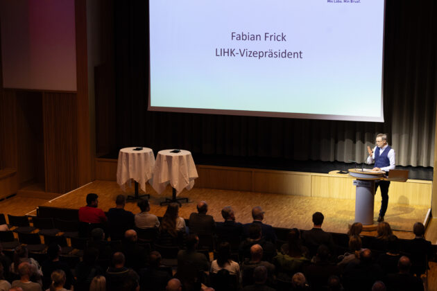Nach der Eröffnung der Veranstaltung durch LIHK-Vizepräsident Fabian Frick und Gruss-worten der Regierung, überbracht von Bildungsminister Daniel Oehry, erhielten die Anwesenden einen Einblick in die Ziele, den Inhalt und den Ablauf des BerufsCHECK. Anschliessend teilten aktuelle Lernende und Berufsbildner aus unterschiedlichen Mitgliedsunternehmen der organisierenden Verbände ihre persönlichen Erfahrungen im Rahmen des Berufswahlprozesses und gaben den Anwesenden dadurch wertvolle Einblicke, wie sie die jungen Erwachsene bei diesem Prozess unterstützen können. Den inhaltlichen Abschluss des Abends bildete ein Referat von Dr. med. Marc Risch, der seine Erfahrungen als Vater zweier junger Erwachsenen, die unlängst den Berufswahlprozess durchliefen, mit seiner fachlichen Expertise als Facharzt, Sportpsychiater und Experte im Bereich Neurodiversität kombinierte und die Thematik dadurch aus zusätzlichen Blickwinkeln beleuchtete. Wirtschaftskammer-Präsident Ado Vogt schloss den offiziellen Teil der Veranstaltung und lud die Teilnehmerinnen und Teilnehmer im Namen der Verbände zu einem Apéro ein.