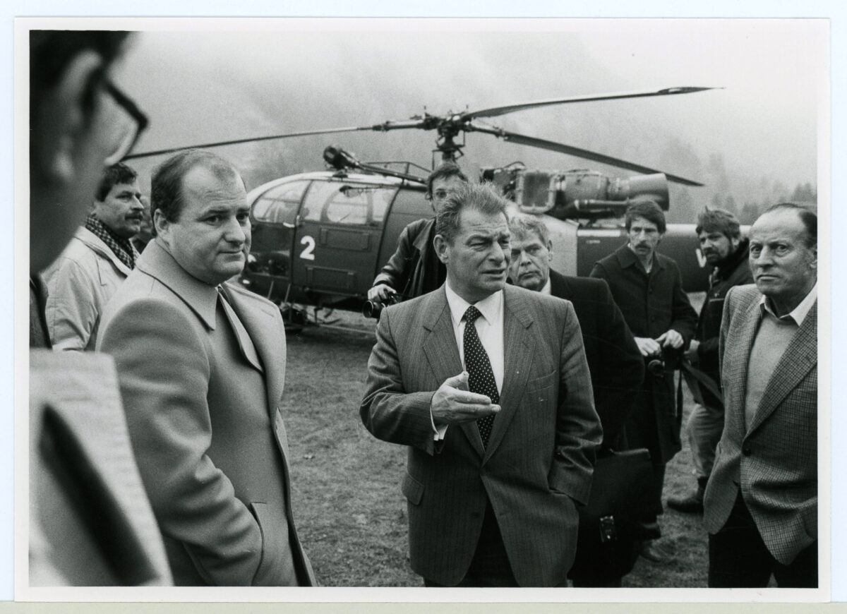 Die Forderungen und Vorschläge verhallten in der Schweiz nicht ungehört. Knapp eine Woche nach dem Waldbrand reiste Bundesrat Jean-Pascal Delamuraz, der Vorsteher des Eidgenössischen Militärdepartements (EMD), nach Liechtenstein. Inzwischen war der Föhn von einer Regenfront abgelöst worden, sodass keine Gefahr mehr für ein Wiederaufflackern von kleineren oder grösseren Brandherden bestand. Bei einem Augenschein im Waldbrand-gebiet konnte sich der EMD-Chef ein Bild von den Zerstörungen durch das Feuer machen. Im Brandgebiet befanden sich auch noch Reste von Feuerwehrmaterial, das die Feuer-wehrmänner bei ihrer Flucht vor dem sich mit hohem Tempo ausbreitenden Feuer zurücklassen mussten: Diese Gegenstände zeigten anschaulich die dramatische Situation