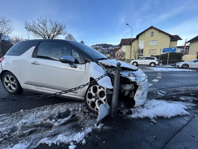 Gegen 14:40 Uhr kollidierte ein Mann im „Eintracht“-Kreisel in Eschen mit seinem Auto mit einem Eisenpfosten. Dabei wurde er an der Hand und an der Stirn verletzt. Er wurde durch den Rettungsdienst ins Spital gebracht.
