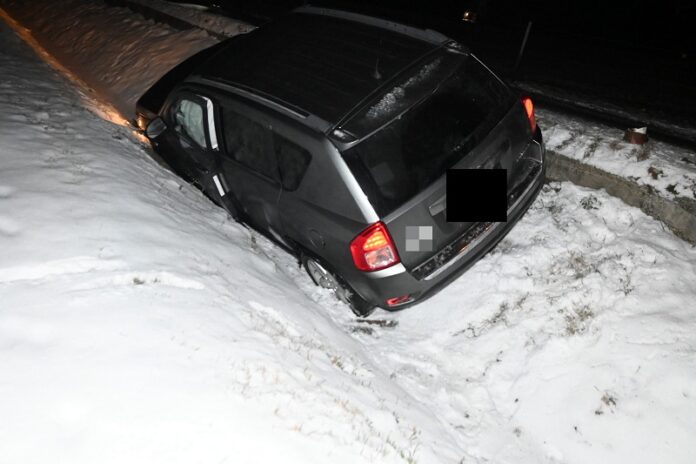 Ein Mann fuhr mit seinem Personenwagen in östliche Richtung, als er wegen eines entgegenkommenden Autos eine Bremsung einleitete. Aufgrund der schneebedeckten Fahrbahn verlor er die Kontrolle über sein Fahrzeug, kollidierte mit einem Kanalisationsbetonelement und kam letztendlich im Sportfeldgraben zum Stillstand.