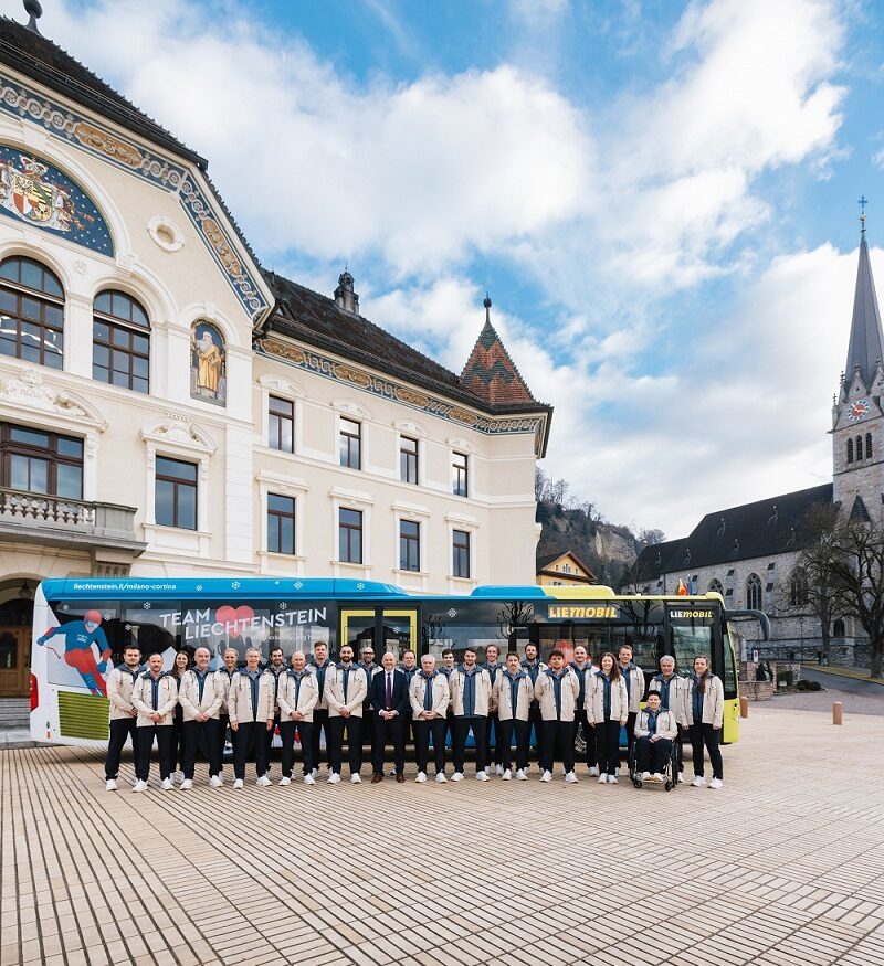 Die liechtensteinische Delegation fuhr im eigens für die Olympischen Spiele unter dem Motto „Team Liechtenstein: Small country. Big heart.“ gestalteten Bus der LIEmobil vor, der auch an den Spielen in Milano-Cortina als mobiles „House of Liechtenstein“ fungieren wird. Auf den Anlass im Regierungsgebäude folgte die offizielle Verabschiedung durch seine Durchlaut den Erbprinzen auf Schloss Vaduz.