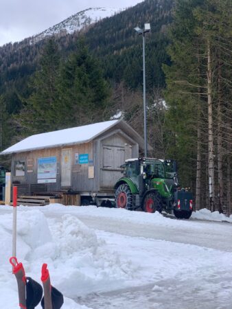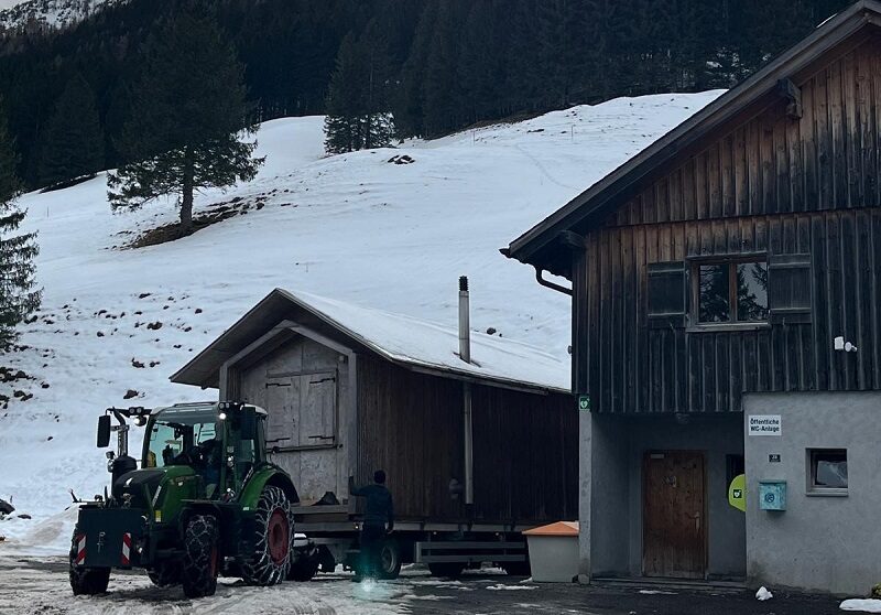Bild: Die Loipahötta ist nach dem Umzug am 23. Februar 2026 vorerst neben dem WC parkiert.