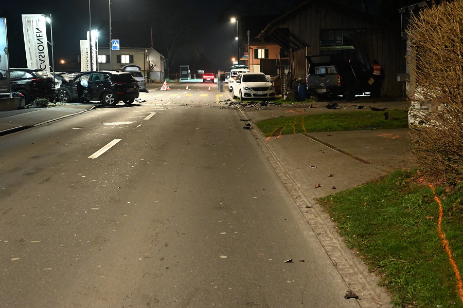 Eines der parkierten Autos wurde in eine Scheune gestossen, welche ebenfalls beschädigt wurde. Der Sachschaden beläuft sich auf rund 100’000 Franken. Der 50-Jährige wurde durch den Unfall unbestimmt verletzt und vom Rettungsdienst ins Spital gebracht.