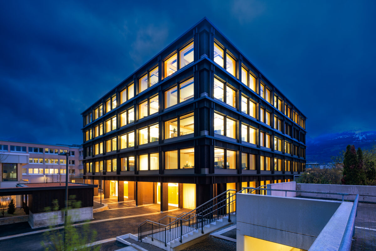 Das Haus Giessen vereint rund 250 Arbeitsplätze, flexible Raumtypen und Bereiche für Konzentration, Zusammenarbeit und Austausch. Der Neubau ist als Holz-Beton-Hybridbau realisiert und erfüllt hohe ökologische Standards. Diese Kombination aus Funktionalität und Nachhaltigkeit macht das Gebäude zu einem Vorzeigeprojekt in Liechtenstein.