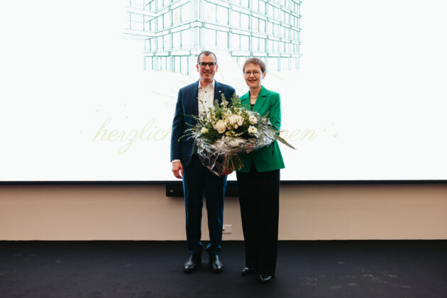 Architekt Marc Fisler (Baumschlager Eberle) und Jean Claude Zurflüh (HRS) gaben den Gästen spannende Einblicke in Planung und Umsetzung – von der Idee über technische Lösungen bis zur Einweihung. Gemeinsam mit Patrick Fürer, Group CDO der LLB, freuten sie sich über die termin- und budgetgerechte Fertigstellung dieses Generationenprojekts, das bereits 2018 begann.