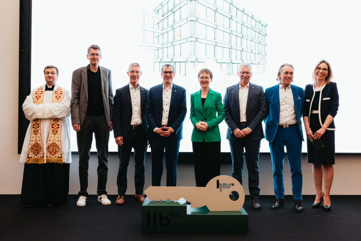 Vor der Segnung durch Dompfarrer Michael Wimmer überreichte Jean Claude Zurflüh vom Generalunternehmer HRS den Gebäudeschlüssel symbolisch an Group CEO Christoph Reich.