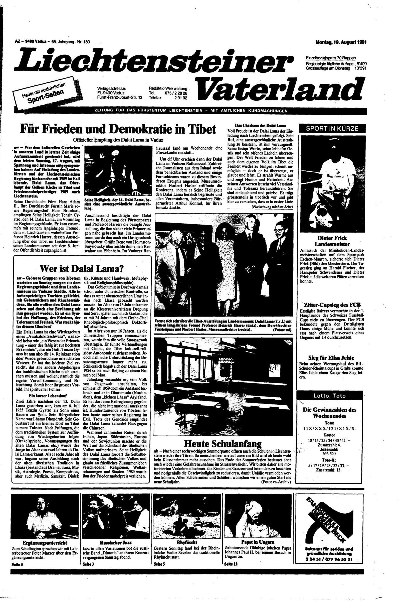 Der Dalai Lama, das geistliche Oberhaupt der Tibeter, konnte diesen Sommer seinen 90. Geburtstag feiern. Schon seit einiger Zeit wird spekuliert, wer sein Nachfolger werden könnte. Der Friedensnobelpreisträger hielt sich im Jahr 1991 zu einem Besuch in Liechtenstein auf. Anlass war die Sonderausstellung «Tibet in Kunst und Kultur» im Liechtensteinischen Landesmuseum.
