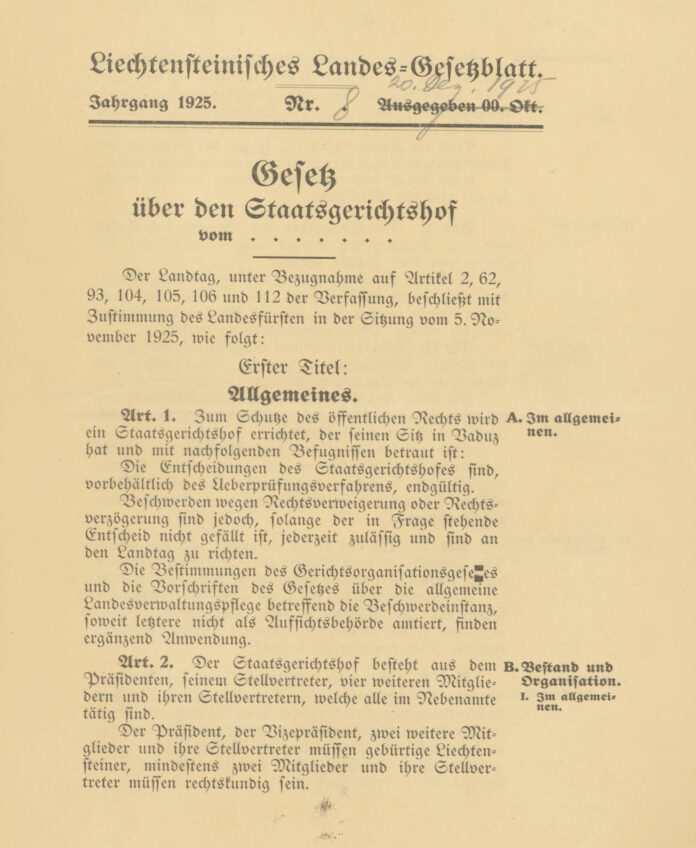 Weniger bekannt ist, dass es sich beim StGH um ein – verglichen mit anderen Verfassungsgerichten – altes Gericht handelt. Immerhin steht der StGH seit 100 Jahren ununterbrochen im Einsatz. Ein kontinuierliches Wirken ohne Brüche in der Rechtsprechung und ohne plötzliche personelle Wechsel ist aus rechtsstaatlicher Sicht begrüssenswert. Es zeigt, dass das Gericht nicht Spielball der gerade herrschenden politischen Meinung ist.
