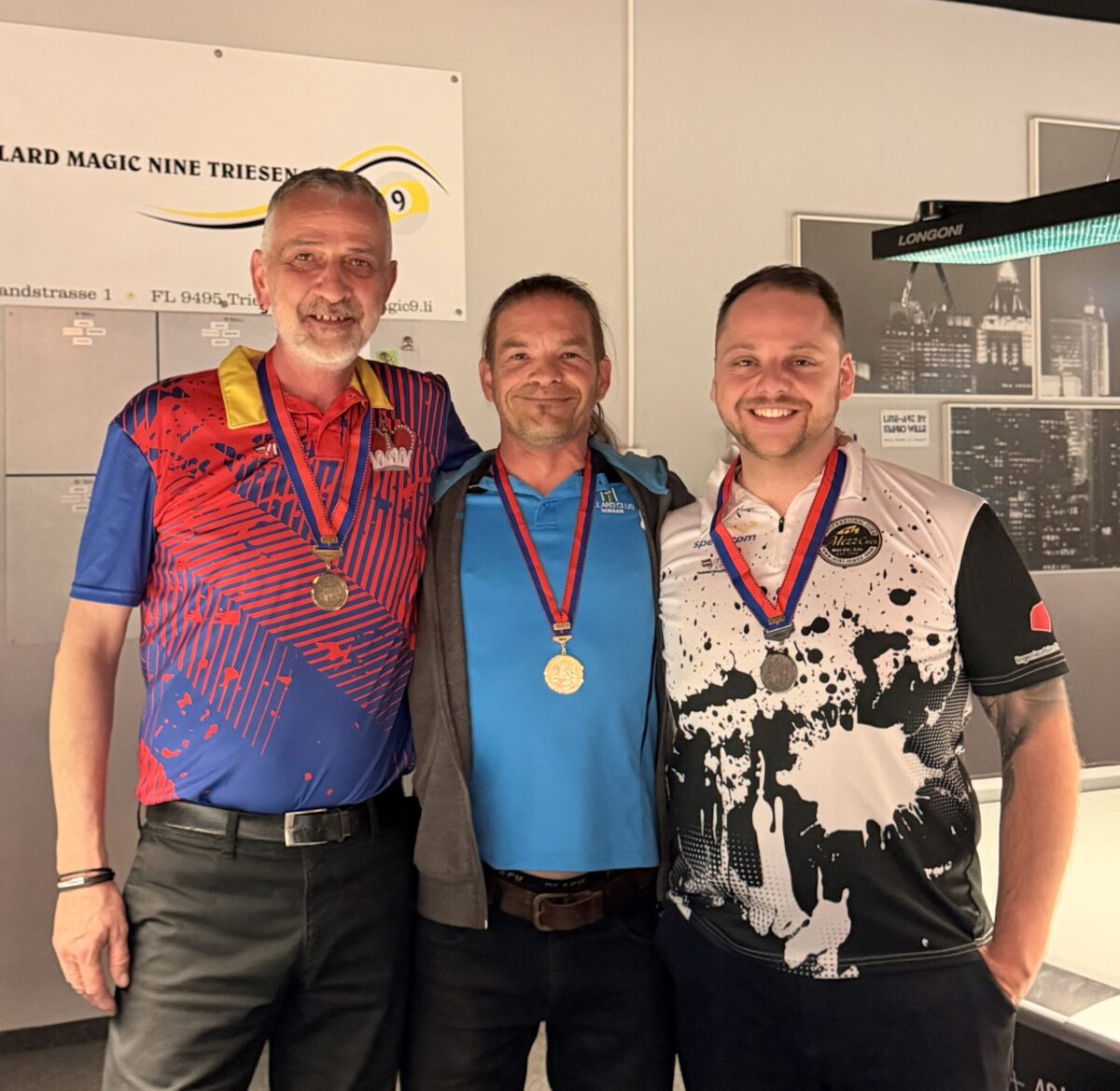 Im Spiel um Platz drei verlief die Partie lange ausgeglichen, ehe Berno Heeb mit der Tageshöchstserie von 43 Bällen die Entscheidung herbeiführte und sich Bronze sicherte.