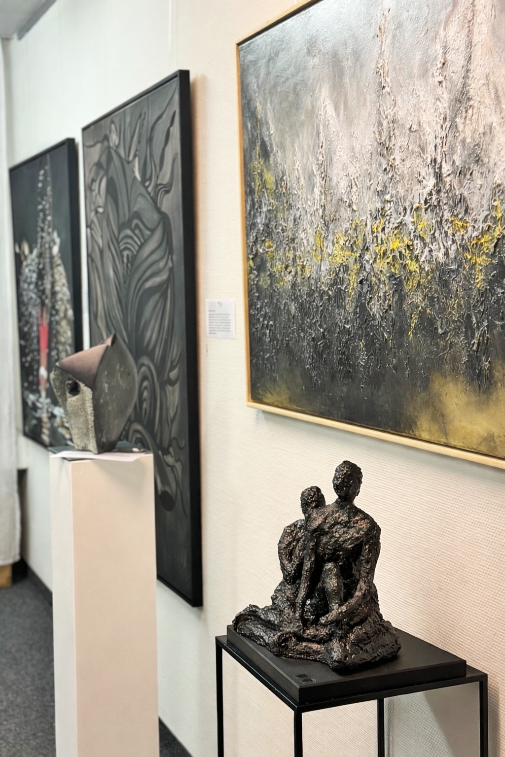 Im Matsch spielende Jungs, eine von Händen getragene Frau, ein schwarzer Schwan … Auch Kunstwerke aus Acryl sind in der Galerie zu bewundern, welche die jeweilige Stimmung der Künstlerin beim Malen widerspiegeln. So unterschiedlich ihre Werke auch sein mögen – Bilder, Skulpturen, mal realistisch, mal abstrakt –,