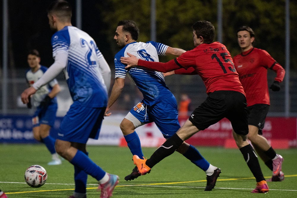BILD: Torschütze zum 1:1 Medin Murati (2.v.l.) heute Abend im Erstligaspiel gegen den FC Wettswil-Bonstetten/ZH. Foto: Jürgen Posch