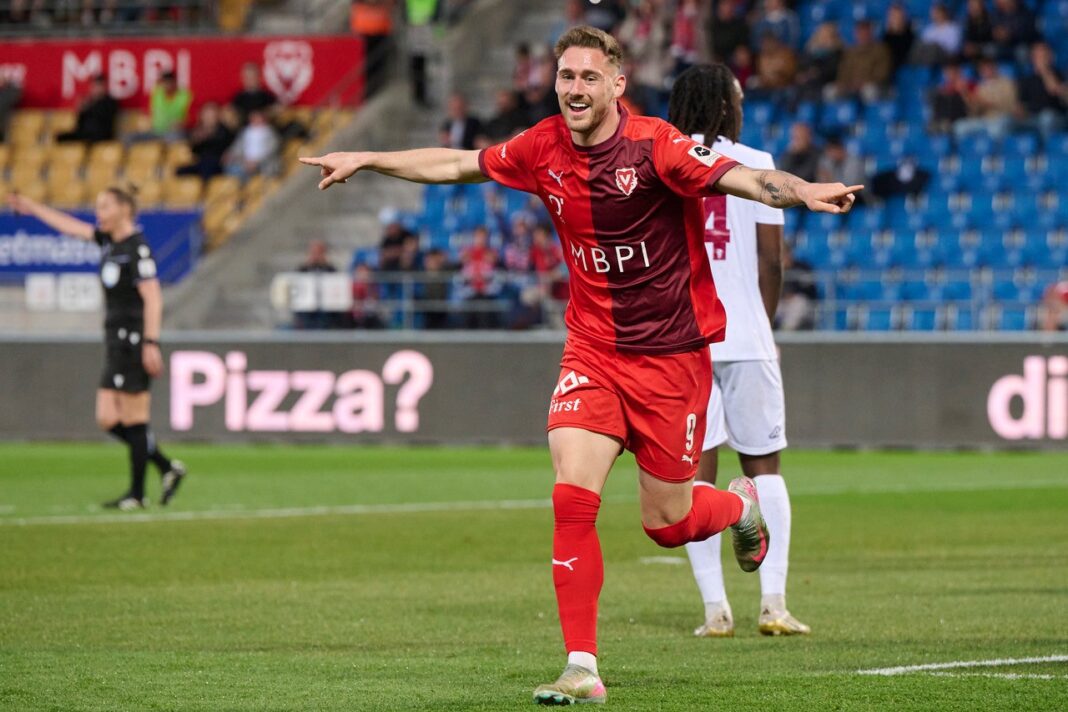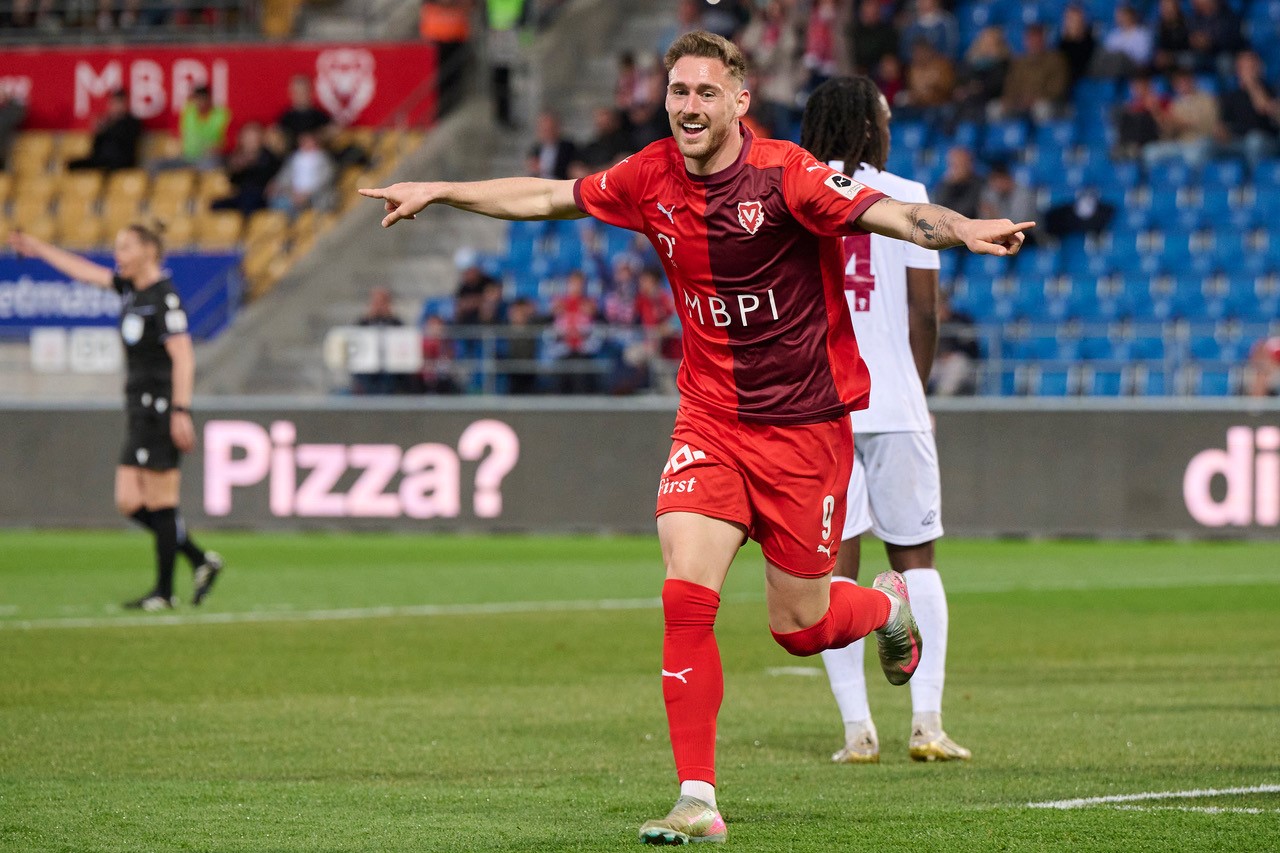 BILD:Rheinparkstadion Vaduz, am 8.4.2026, FCV vers AC Bellinzona 3:2. Foto: Doppel-Torschütze Marcel Monsberger freut sich nach seinem Tor zur 1:0-Führung. Foto. Michael Zanghellini
