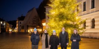 Weihnachtsbaum der Gemeinde Triesen vor dem Regierungsgebäude