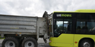 Kollision zwischen Landwirtschaftsanhänger und Linienbus