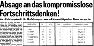 1976: Umfahrungsstrasse Schaan- Vaduz vom Volk massiv abgelehnt