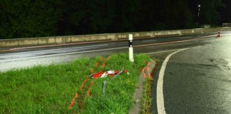 Selbstunfall: gegen Tafel geprallt und weitergefahren