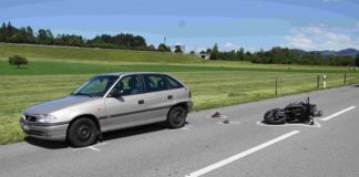 Verkehrsunfall zwischen Auto und Motorrad mit Schwerverletzten