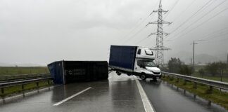 Anhänger von Lieferwagen auf Autobahn gekippt