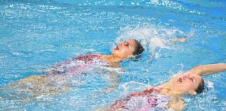 Artistic Swimming Duett und Leichtathlet*innen im Einsatz