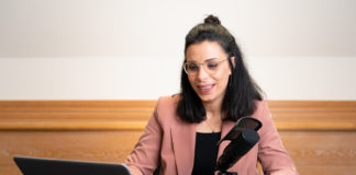 Schüler im Videostream mit Bildungsministerin Hasler in Kontakt