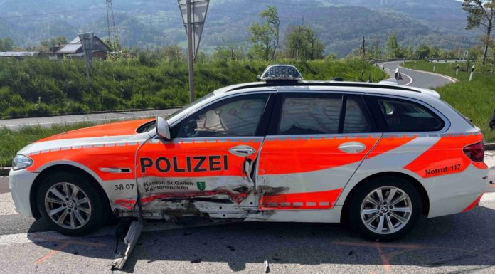 Am Donnerstag (21.04.2022), kurz nach 14:25 Uhr, ist ein Auto auf der Autobahn A13 mit einem Patrouillenfahrzeug der Kantonspolizei St.Gallen kollidiert. Das Patrouillenfahrzeug signalisierte...