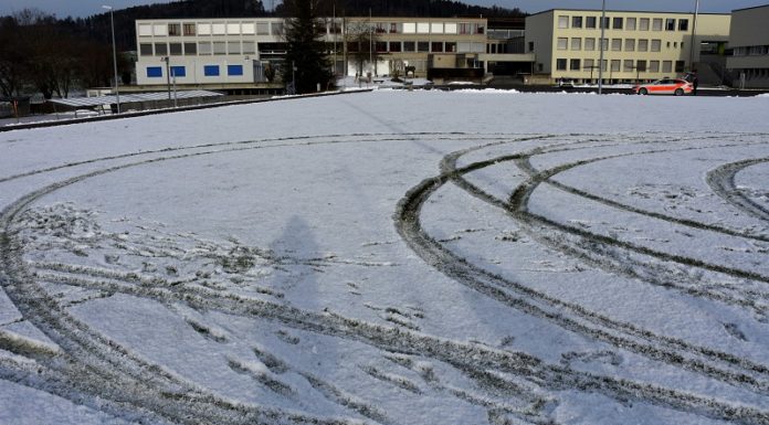 Zuckenriet - In der Zeit zwischen Mittwochnachmittag und Donnerstagmorgen (31.12.2020), ist eine unbekannte Täterschaft mit einem Fahrzeug auf dem schneebedeckten Sportplatz der Oberstufe Sproochbrugg...