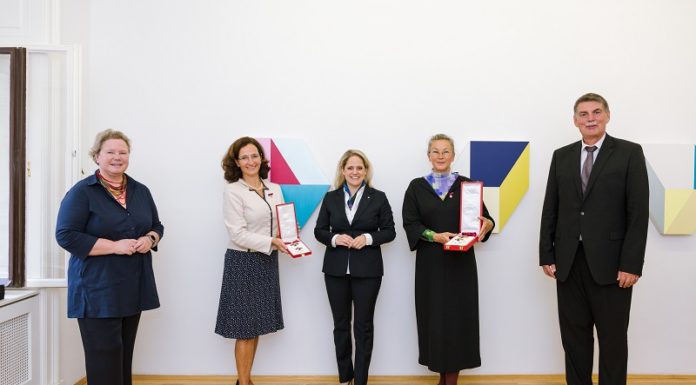 Aussenministerin Katrin Eggenberger überreicht in Wien zwei Orden