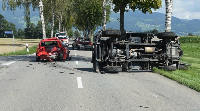 Am Samstag (15.08.2020), um 11 Uhr, ist es auf der Staatsstrasse, Fahrtrichtung Oberriet-Altstätten, zu einer Auffahrkollision mit drei beteiligten Autos gekommen....
