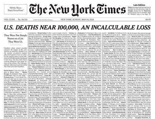 Es gibt viele Arten den Verstorbenen zu gedenken. Die New York Times ging hier ganz neue Wege und hat die Titelseite den amerikanischen Opfern...