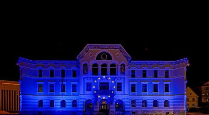 Vaduz - Mit einer Lichtprojektion der Europaflagge auf die Fassade des Regierungsgebäudes feierte Liechtenstein am 9. Mai den diesjährigen Europatag, welcher...