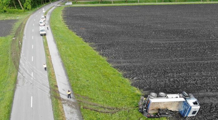 Am Freitag (01.05.2020), um 07:40 Uhr, ist auf der Rietstrasse, ein 3-Achsen-Lastwagen zur Seite gekippt. Es entstand hoher Sachschaden.