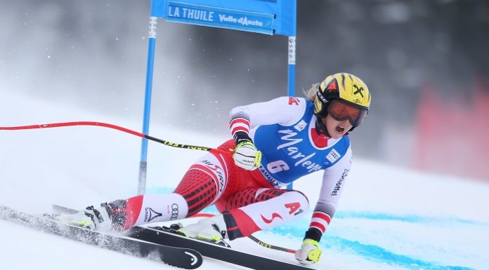 Die 23-jährige Vorarlbergerin Nina Ortlieb gewinnt hauchdünn im Super-G in La Thuile mit einer Hundertstel Vorsprung auf...
