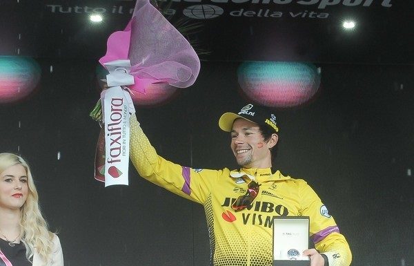 Primoz Roglic gewinnt das 36,2 km lange Zeitfahren von Jurancon nach Pau in 47:05 Minuten...