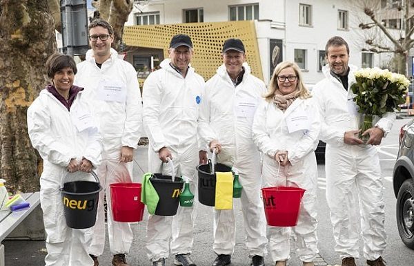 Regierungschef und Bürgermeister schrubbten tüchtig