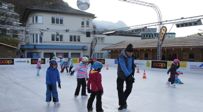 Gut besuchte Eislaufkurse auf dem Eisplatz in Vaduz