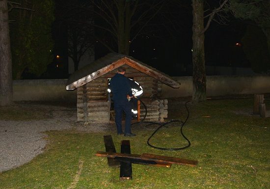 Holzhäuschen in Brand geraten